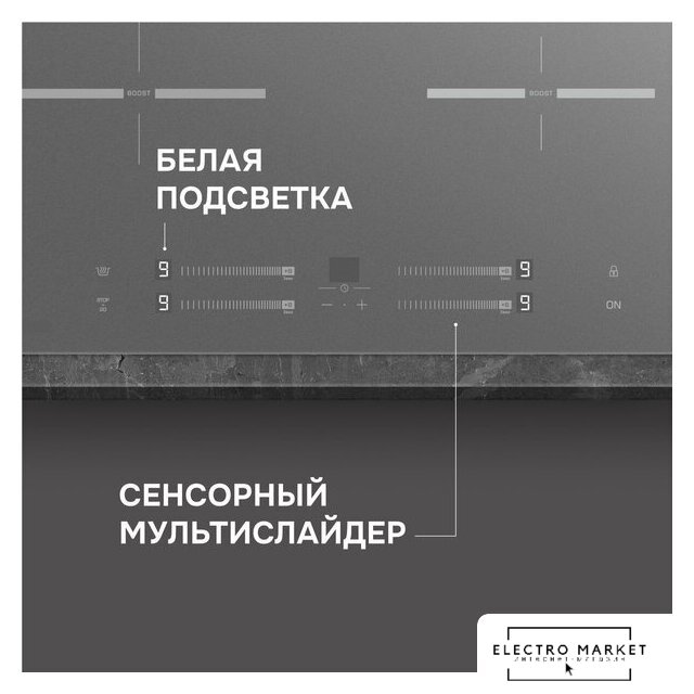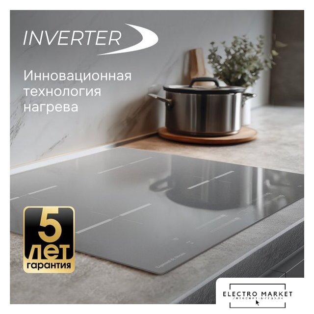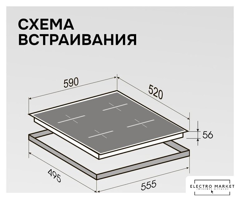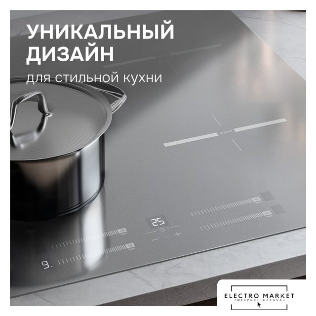 индукционная на 4 конфорки, cтеклокерамика, мощность: 6800 Вт, независимая установка, размеры (ШхГ): 59x52 см