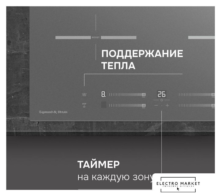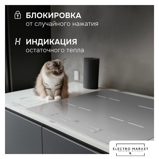 | Подробная информация о конфорках | Ближняя левая 180 мм, 1900/2200Дальняя левая 160 мм, 1300/1500Дальняя правая 180 мм, 1900/2200Ближняя правая 160 мм, 1300/1500 |