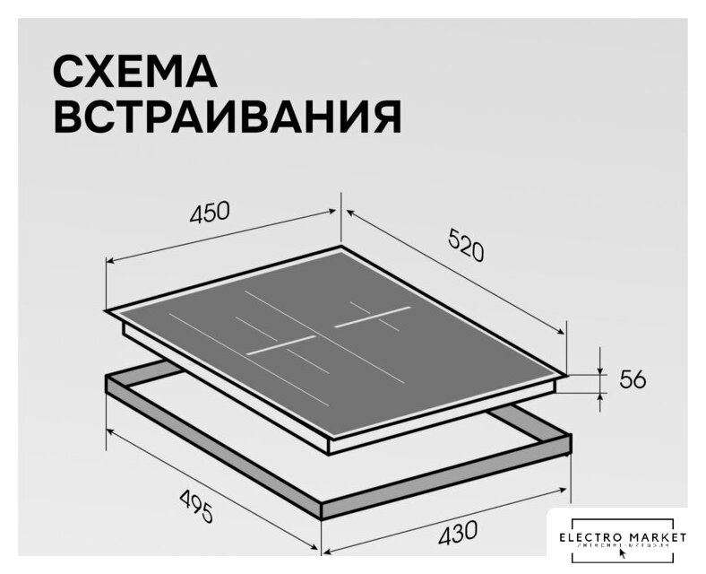 индукционная на 4 конфорки, cтеклокерамика, мощность: 7200 Вт, независимая установка, размеры (ШхГ): 59x52 см