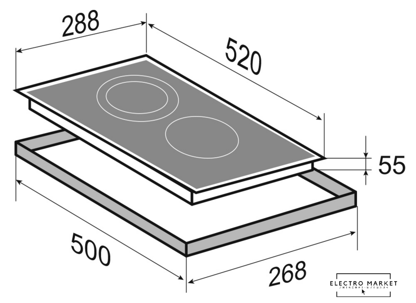 индукционная на 2 конфорки, cтеклокерамика, мощность: 3800 Вт, независимая установка, размеры (ШхГ): 28.8x52 см