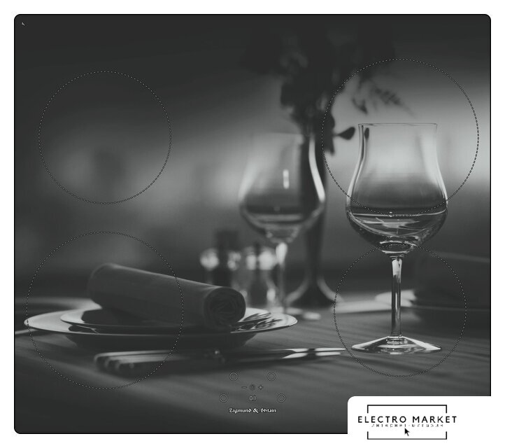 индукционная на 4 конфорки, закаленное стекло, размеры (ШхГ): 59x52 см