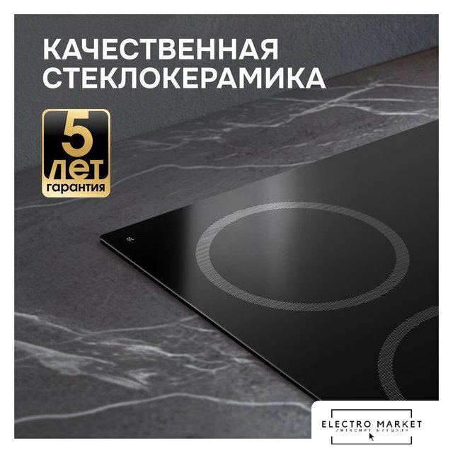 HiLight на 4 конфорки, cтеклокерамика, мощность: 6000 Вт, независимая установка, размеры (ШхГ): 59x52 см
