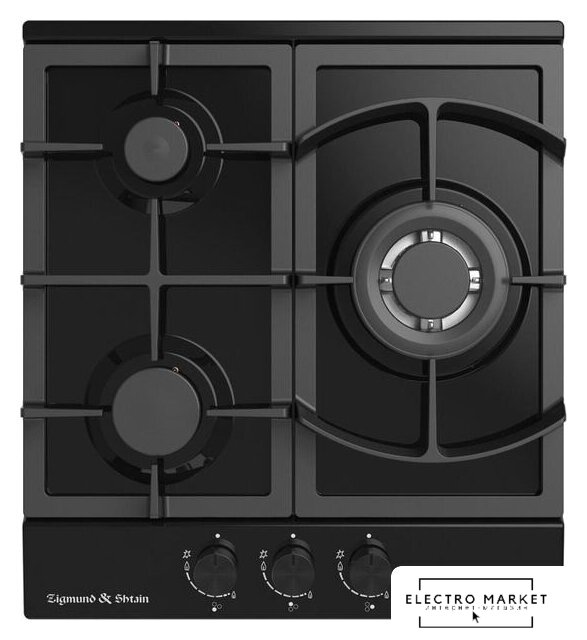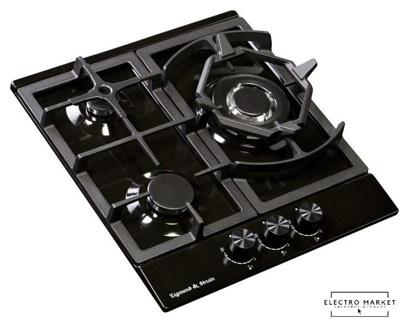 газовая на 3 конфорки, закаленное стекло, мощность: 5950 Вт, автоматический электроподжиг, газ-контроль, решетки: чугун, независимая установка, размеры (ШхГ): 45x52.5 см