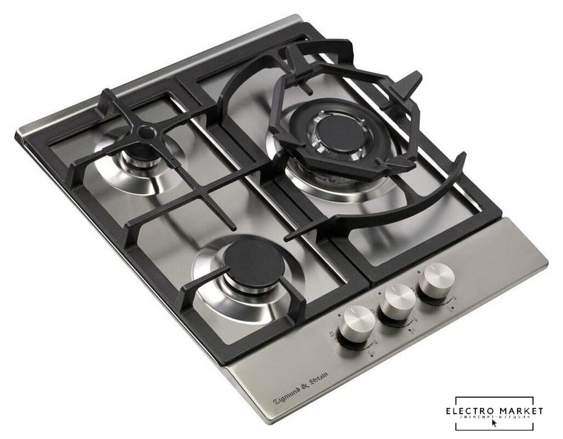 газовая на 3 конфорки, закаленное стекло, мощность: 5950 Вт, автоматический электроподжиг, газ-контроль, решетки: чугун, независимая установка, размеры (ШхГ): 45x52.5 см
