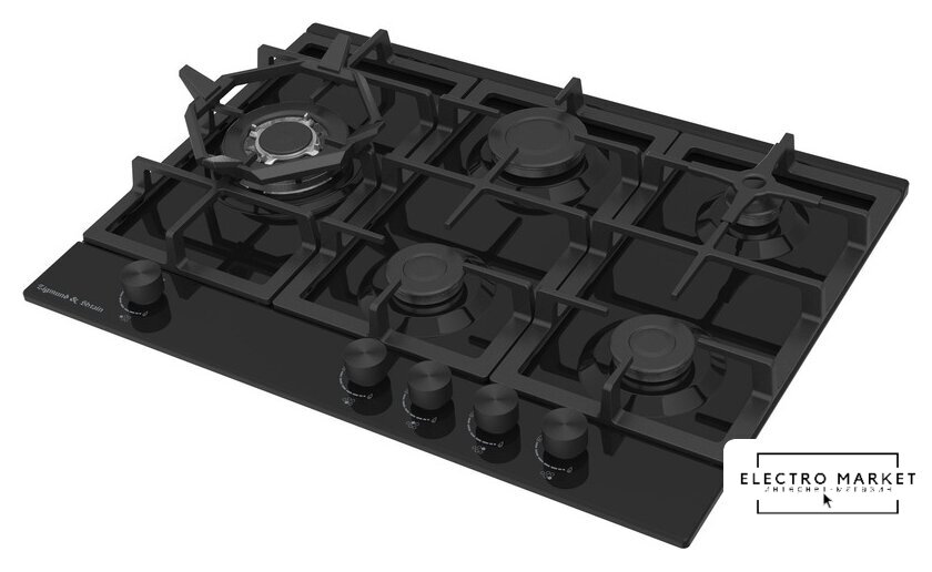 газовая на 4 конфорки, закаленное стекло, мощность: 8300 Вт, автоматический электроподжиг, газ-контроль, решетки: чугун, независимая установка