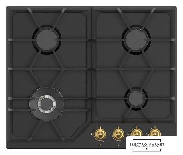 газовая на 4 конфорки, закаленное стекло, мощность: 7600 Вт, автоматический электроподжиг, газ-контроль, решетки: чугун, размеры (ШхГ): 60x52.5 см