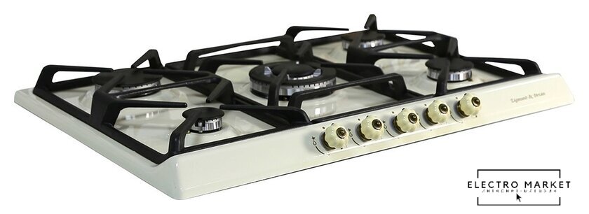 газовая на 5 конфорок, закаленное стекло, мощность: 10700 Вт, автоматический электроподжиг, газ-контроль, решетки: чугун, независимая установка, размеры (ШхГ): 69x52 см