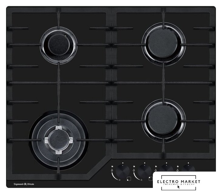 газовая на 4 конфорки, закаленное стекло, мощность: 7400 Вт, газ-контроль, решетки: эмалированная сталь, независимая установка