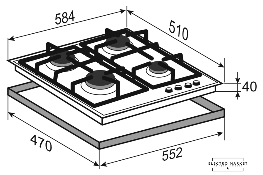 Подробная информация о конфорках | 3400 Вт1880 Вт1880 Вт900 Вт |