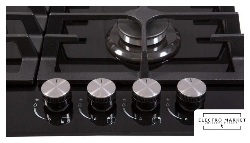 газовая на 4 конфорки, закаленное стекло, мощность: 8060 Вт, автоматический электроподжиг, газ-контроль, решетки: чугун, независимая установка, размеры (ШхГ): 58x50 см