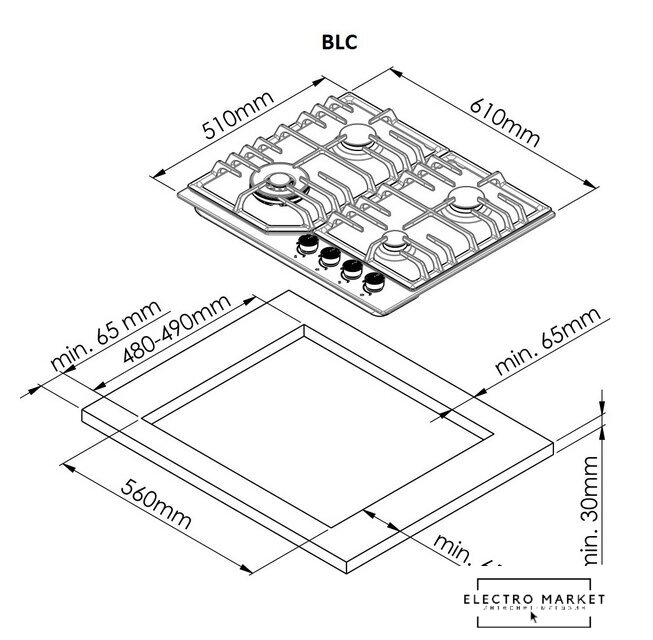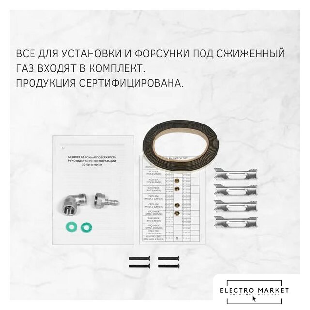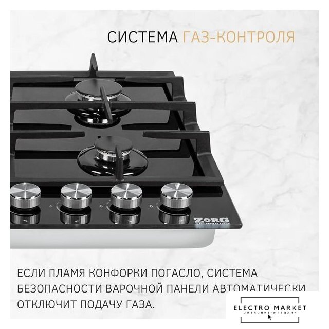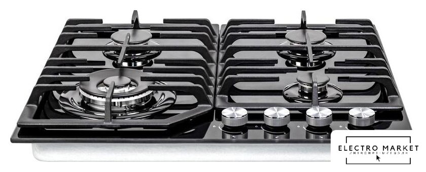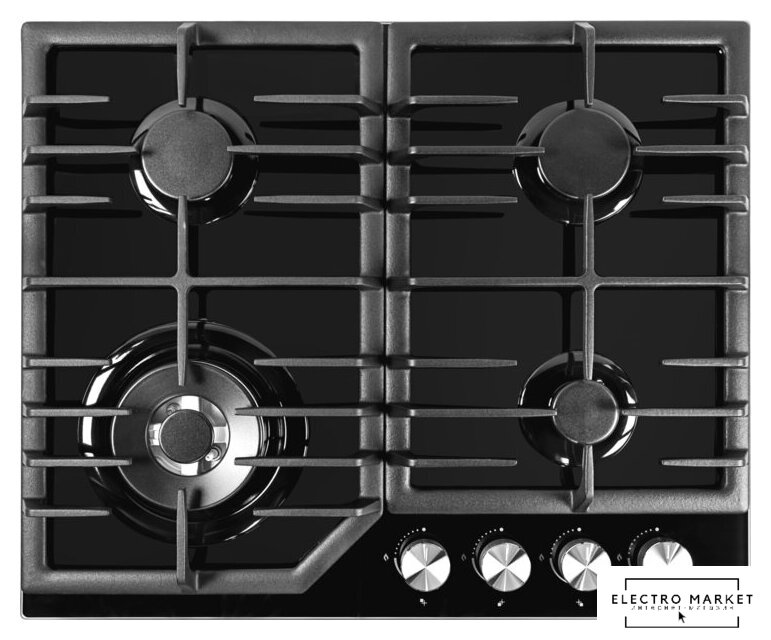 газовая на 4 конфорки, закаленное стекло, мощность: 8300 Вт, газ-контроль, решетки: чугун, независимая установка, размеры (ШхГ): 58x50 см