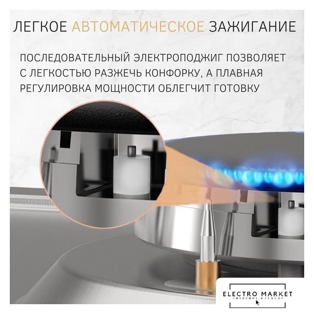 газовая на 3 конфорки, эмалированная сталь, автоматический электроподжиг, газ-контроль, решетки: чугун, независимая установка, размеры (ШхГ): 46x52 см