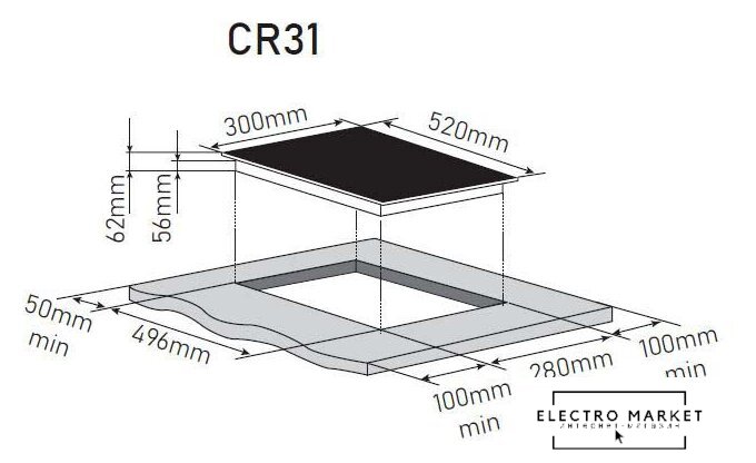 HiLight на 2 конфорки, cтеклокерамика, мощность: 2900 Вт, независимая установка, размеры (ШхГ): 30x52 см