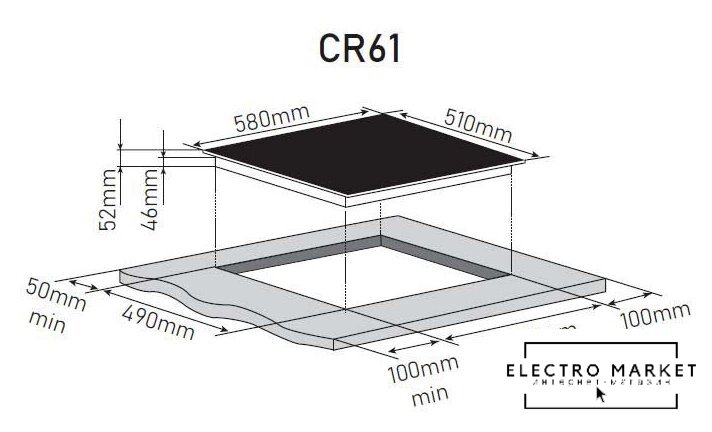 HiLight на 3 конфорки, cтеклокерамика, мощность: 5700 Вт, независимая установка, размеры (ШхГ): 59x52 см