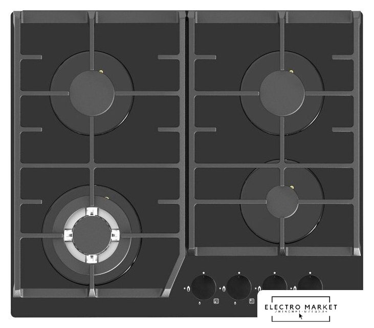 газовая на 4 конфорки, закаленное стекло, мощность: 9100 Вт, автоматический электроподжиг, газ-контроль, решетки: чугун, независимая установка, размеры (ШхГ): 59x51.5 см