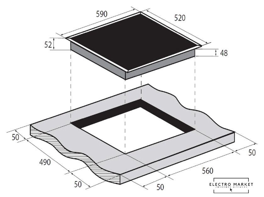 HiLight на 4 конфорки, cтеклокерамика, мощность: 7100 Вт, независимая установка, размеры (ШхГ): 60x52 см