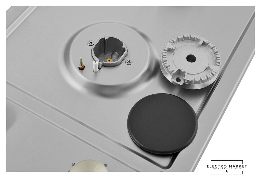 газовая на 4 конфорки, нержавеющая сталь, мощность: 7200 Вт, автоматический электроподжиг, решетки: эмалированная сталь, независимая установка, размеры (ШхГ): 58x51 см