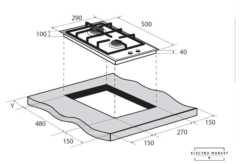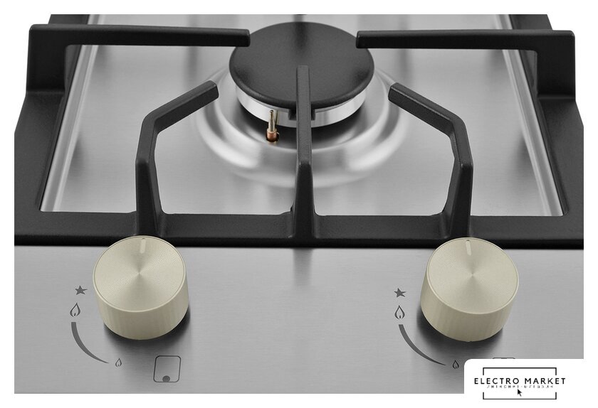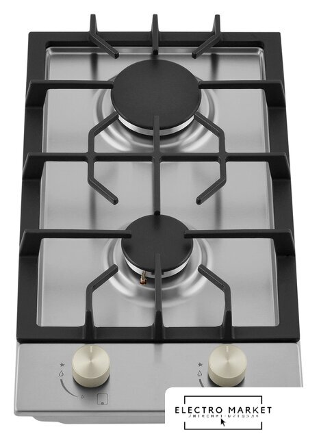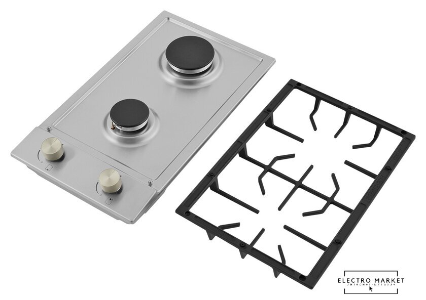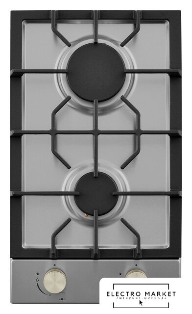 газовая на 2 конфорки, закаленное стекло, мощность: 4000 Вт, автоматический электроподжиг, газ-контроль, решетки: чугун, независимая установка, размеры (ШхГ): 29x52 см