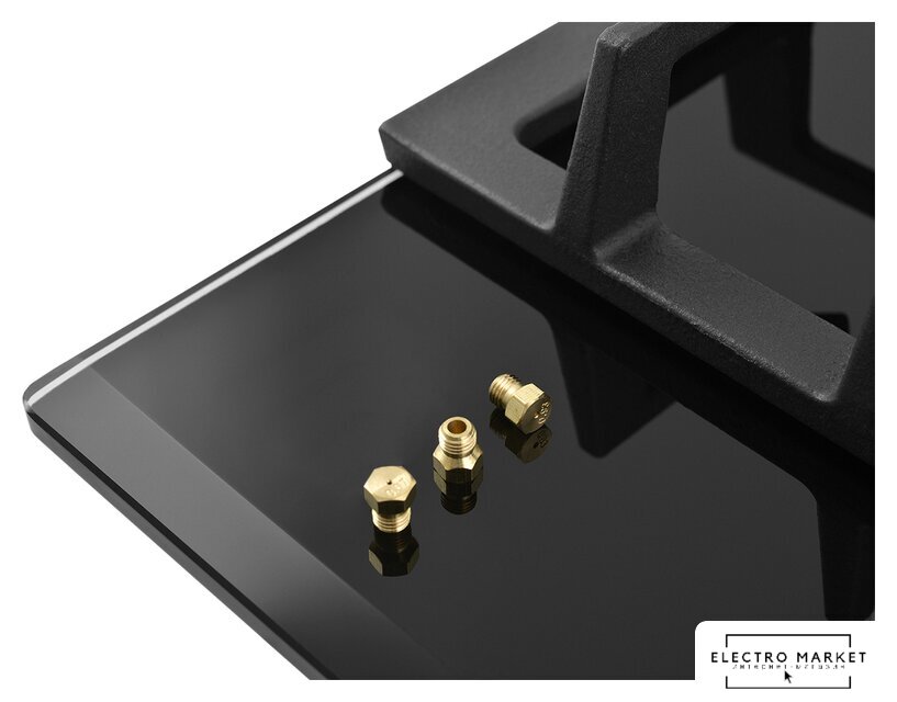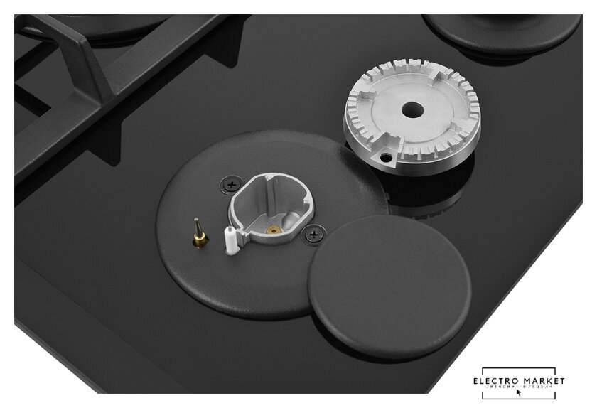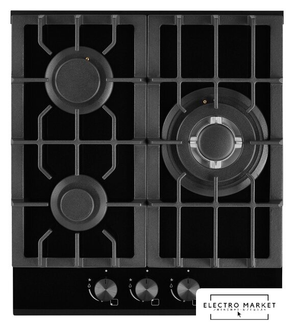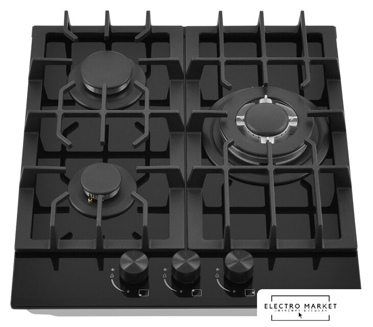 газовая на 3 конфорки, закаленное стекло, мощность: 6400 Вт, автоматический электроподжиг, газ-контроль, решетки: чугун, независимая установка, размеры (ШхГ): 44x51 см