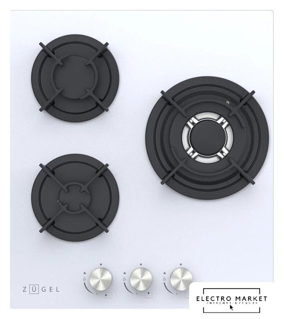 газовая на 3 конфорки, закаленное стекло, мощность: 5950 Вт, автоматический электроподжиг, газ-контроль, решетки: чугун, независимая установка, размеры (ШхГ): 45x52.5 см