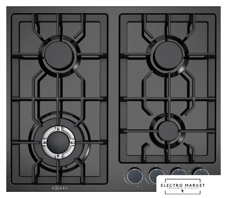 газовая на 4 конфорки, закаленное стекло, мощность: 7500 Вт, автоматический электроподжиг, газ-контроль, решетки: чугун, независимая установка