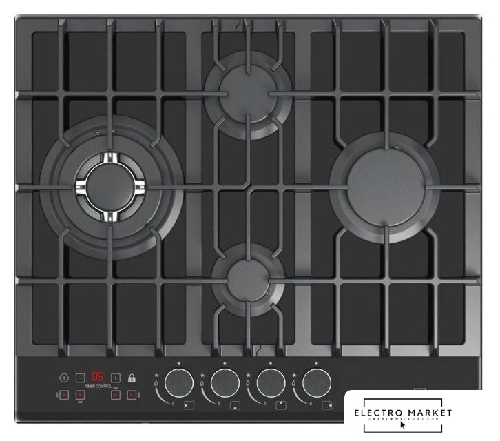 газовая на 4 конфорки, закаленное стекло, мощность: 8580 Вт, автоматический электроподжиг, газ-контроль, решетки: чугун, независимая установка, размеры (ШхГ): 60.4x52 см