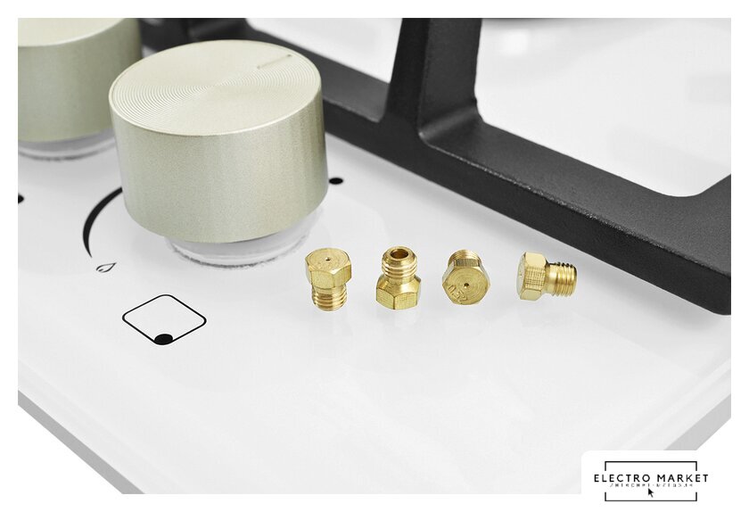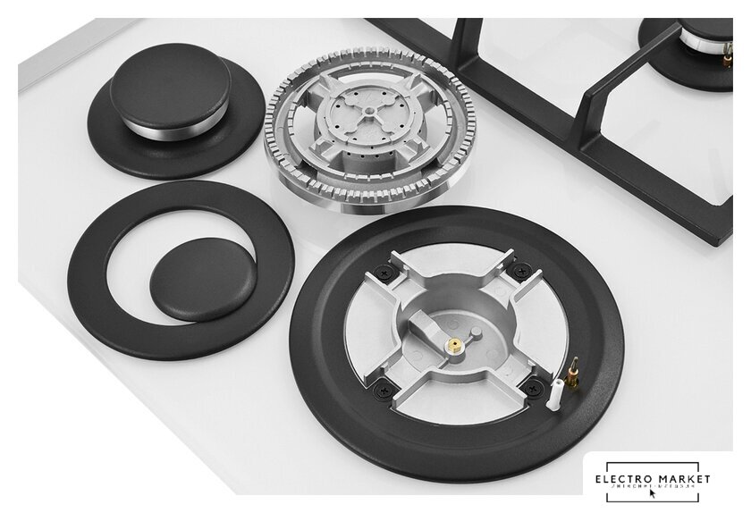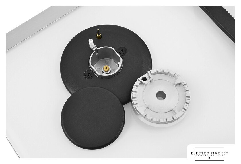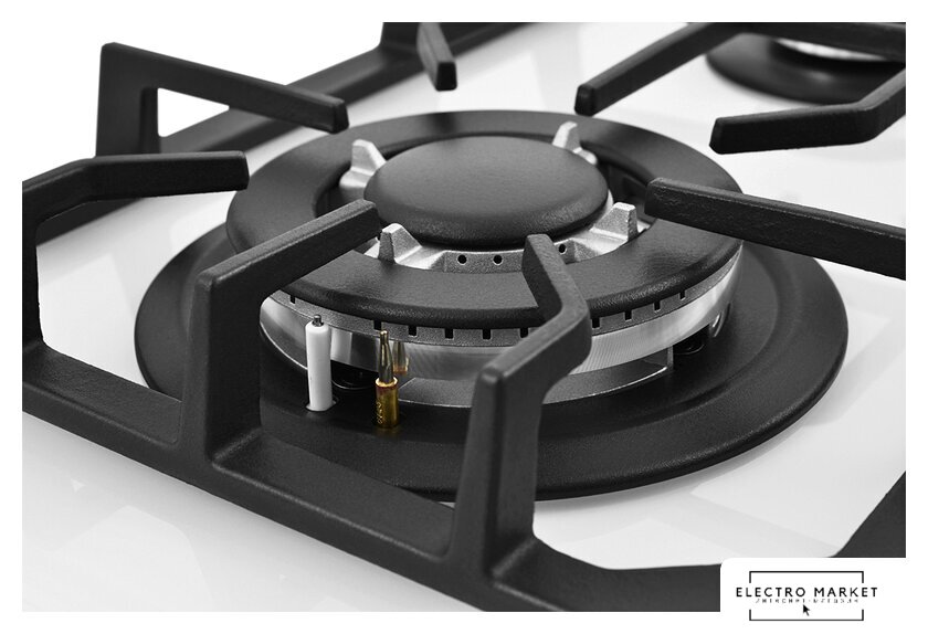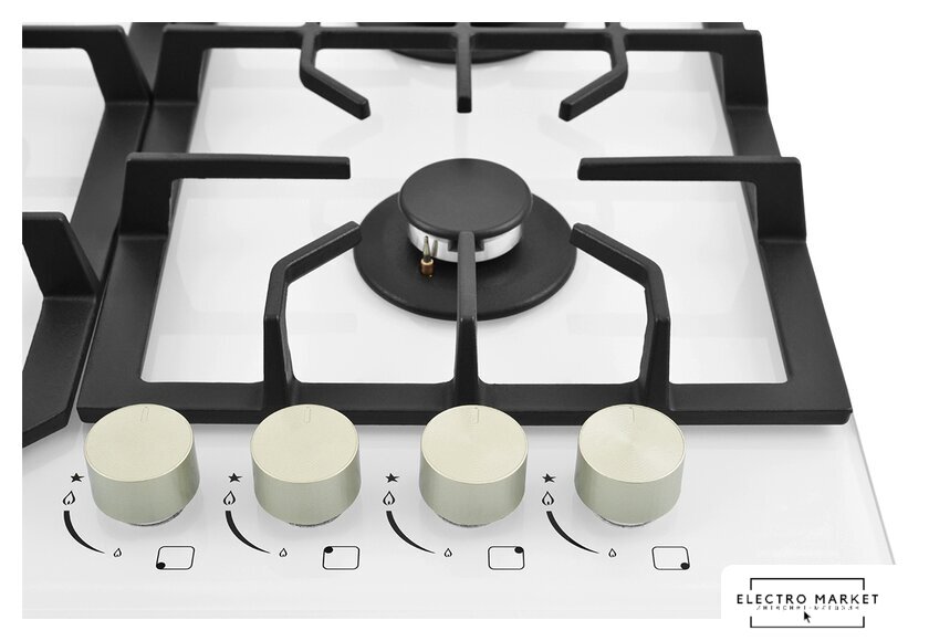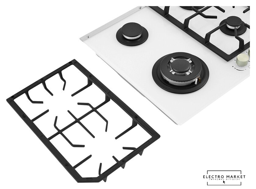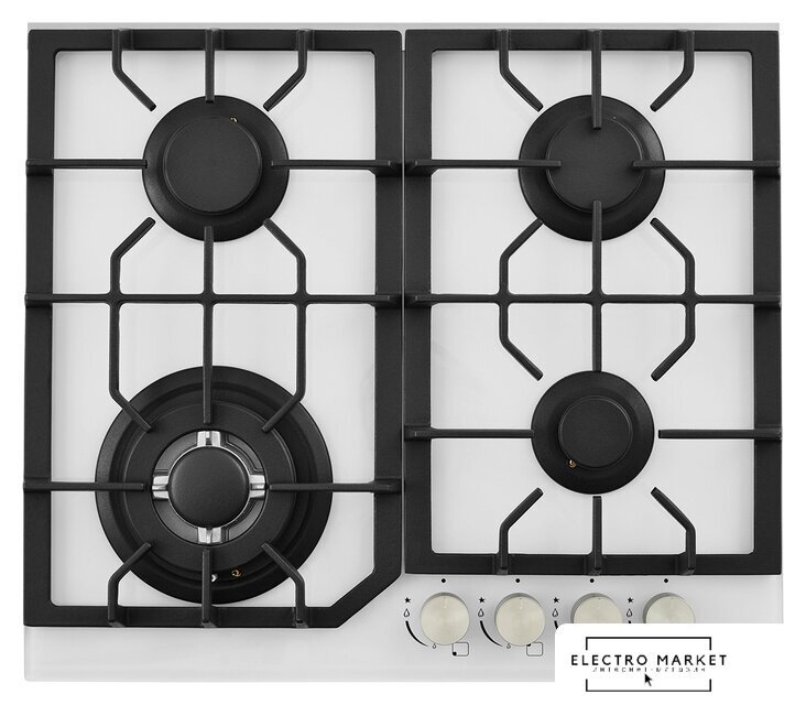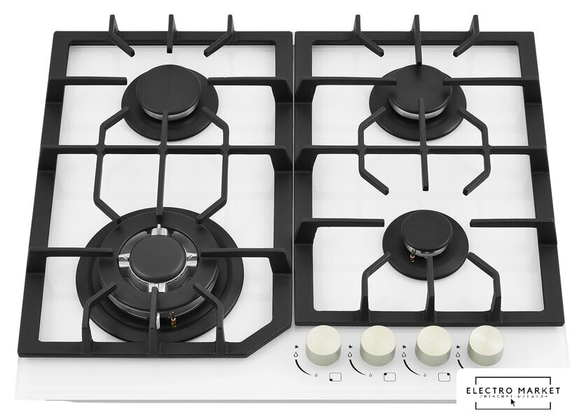газовая на 4 конфорки, закаленное стекло, мощность: 8100 Вт, автоматический электроподжиг, газ-контроль, решетки: чугун, независимая установка, размеры (ШхГ): 60x52 см