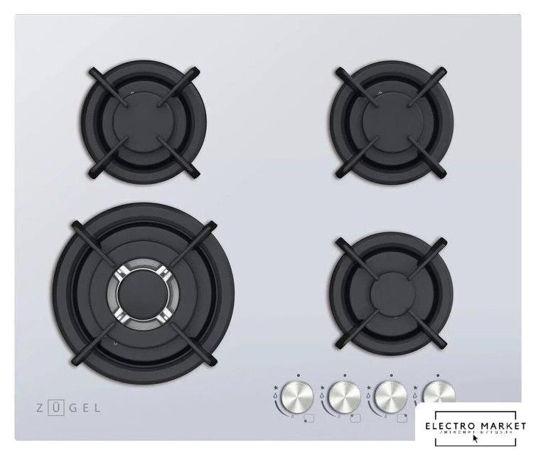 газовая на 4 конфорки, закаленное стекло, автоматический электроподжиг, газ-контроль, решетки: чугун, независимая установка, размеры (ШхГ): 60x52.5 см