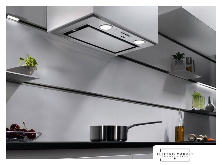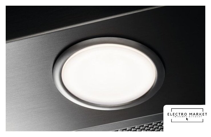 конструкция скрытая, монтаж для встраивания, ширина 72.3 см, управление электронное/кнопочное, производительность вытяжки 600 м³/ч, производительность мотора 1300 м³/ч, цвет нержавеющая сталь