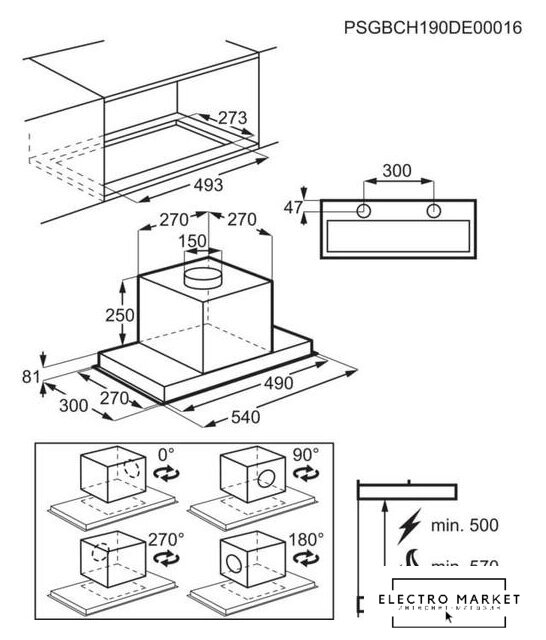 | Минимальная производительность отвода | 300 куб. м/ч |