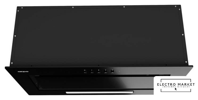конструкция наклонная, монтаж настенный, ширина 50 см, управление сенсорное, производительность мотора 900 м³/ч, цвет черный