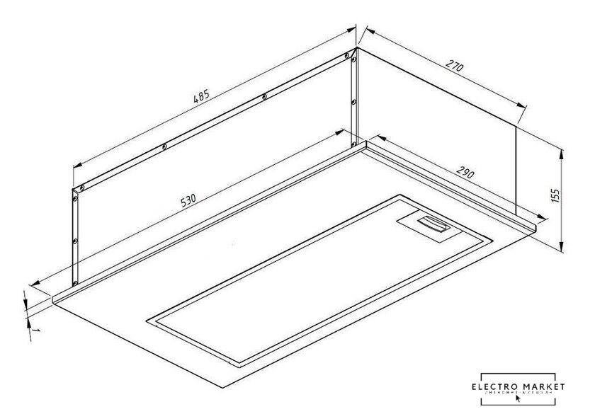 конструкция телескопическая, монтаж для встраивания, управление механическое/слайдерное, производительность мотора 600 м³/ч, ширина 60 см