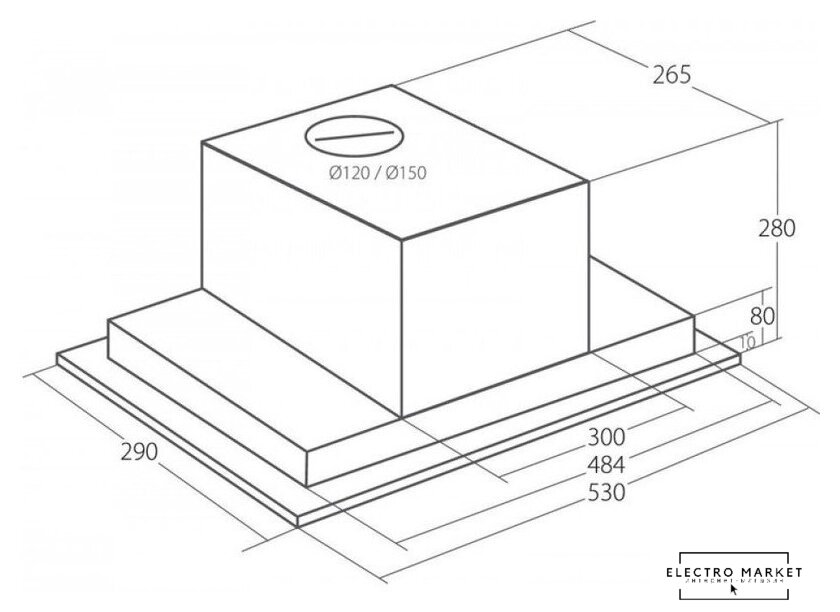 конструкция коробчатая, монтаж для встраивания, управление механическое, производительность мотора 450 м³/ч, ширина 52 см