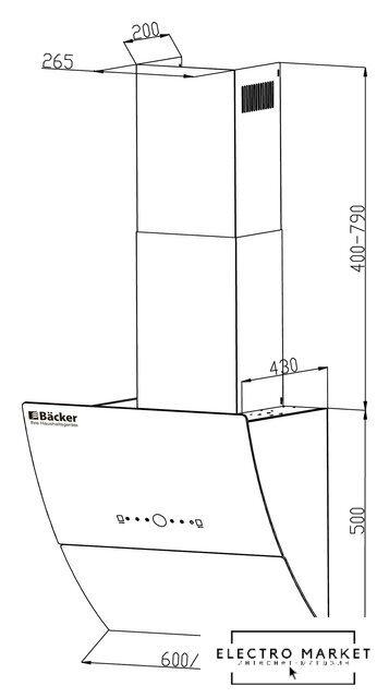 Дополнительные функциональные особенности | Перед началом работы вытяжки, фронтальная панель автоматически открывается. |