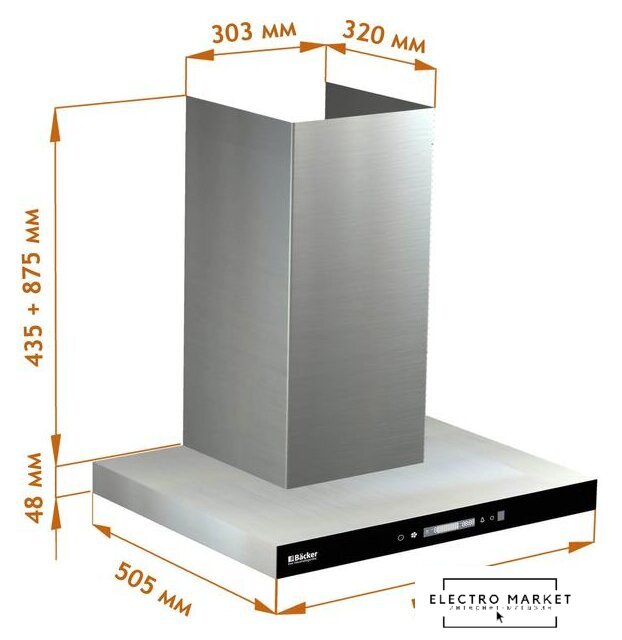 конструкция телескопическая, монтаж для встраивания, ширина 49.8 см, управление механическое/кнопочное, производительность мотора 650 м³/ч, цвет нержавеющая сталь