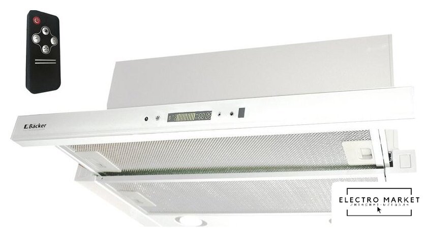конструкция скрытая, монтаж для встраивания, ширина 52 см, управление сенсорное/дистанционное, производительность вытяжки 1000 м³/ч, производительность мотора 1000 м³/ч, цвет белый