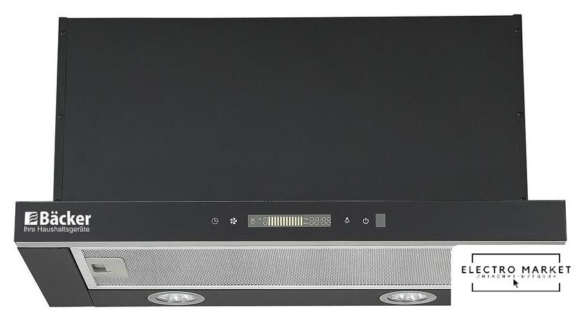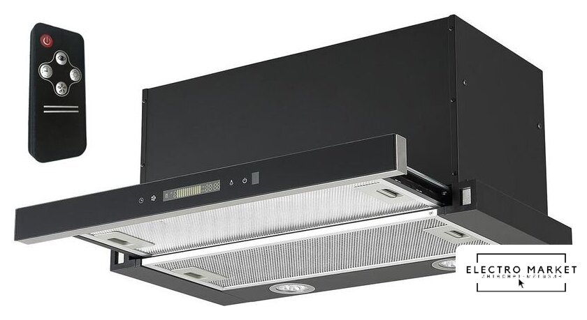 конструкция наклонная, монтаж настенный, ширина 53.8 см, управление сенсорное, производительность вытяжки 1100 м³/ч, производительность мотора 850 м³/ч, цвет черный