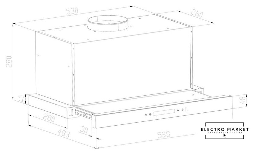 конструкция скрытая, монтаж для встраивания, ширина 70 см, управление механическое/кнопочное, производительность мотора 1200 м³/ч, цвет серебристый
