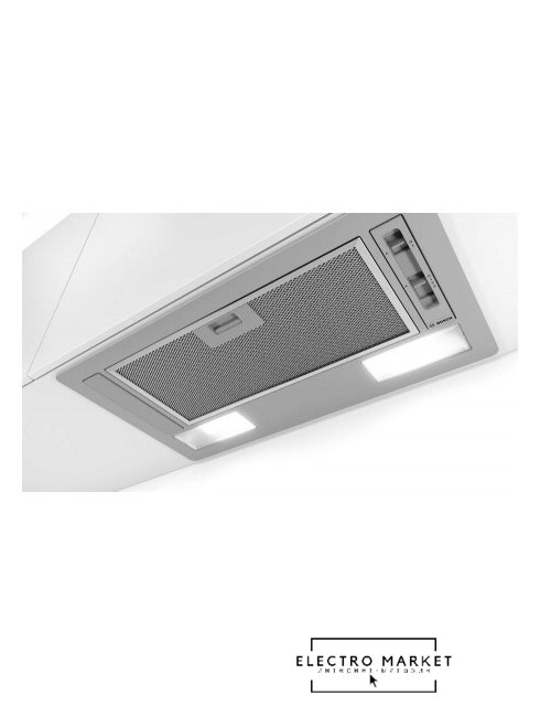 конструкция скрытая, монтаж для встраивания, ширина 59.8 см, управление механическое/кнопочное, производительность мотора 1150 м³/ч, цвет белый