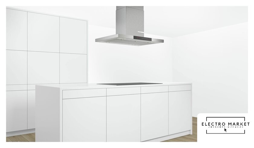 конструкция коробчатая, монтаж настенный, ширина 89.8 см, управление сенсорное, производительность вытяжки 415 м³/ч, производительность мотора 1200 м³/ч, цвет черный