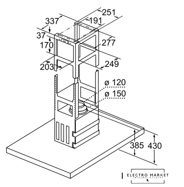 конструкция коробчатая, монтаж настенный, ширина 59.8 см, управление сенсорное, производительность вытяжки 415 м³/ч, производительность мотора 1200 м³/ч, цвет черный