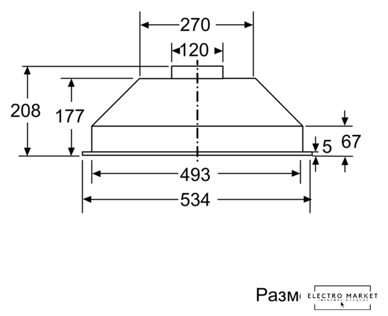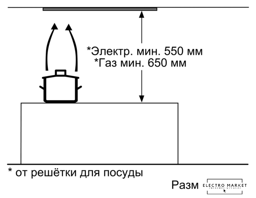 конструкция купольная, монтаж настенный, управление механическое/кнопочное, производительность мотора 650 м³/ч, ширина 60 см