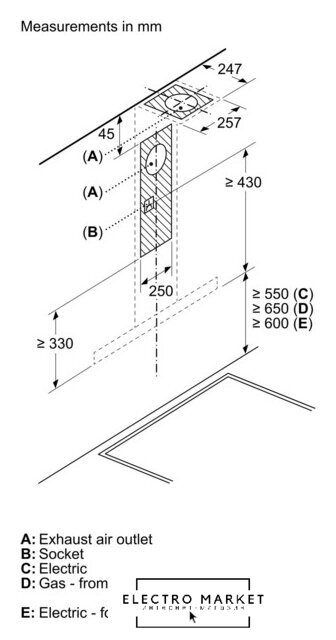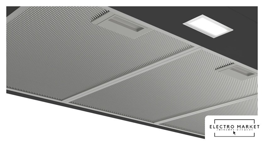 конструкция скрытая, монтаж для встраивания, ширина 53.2 см, управление электронное/кнопочное, производительность вытяжки 425 м³/ч, цвет нержавеющая сталь
