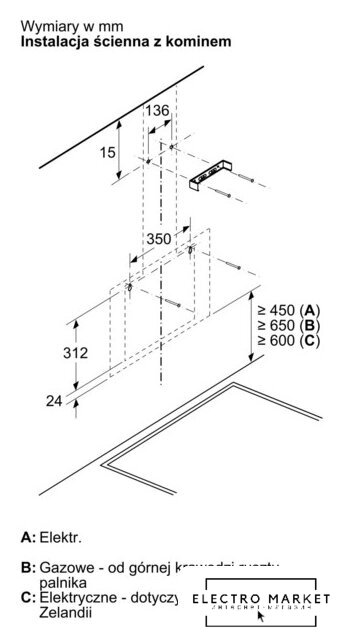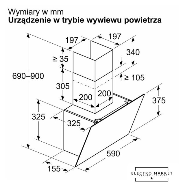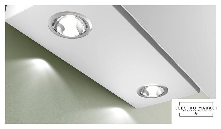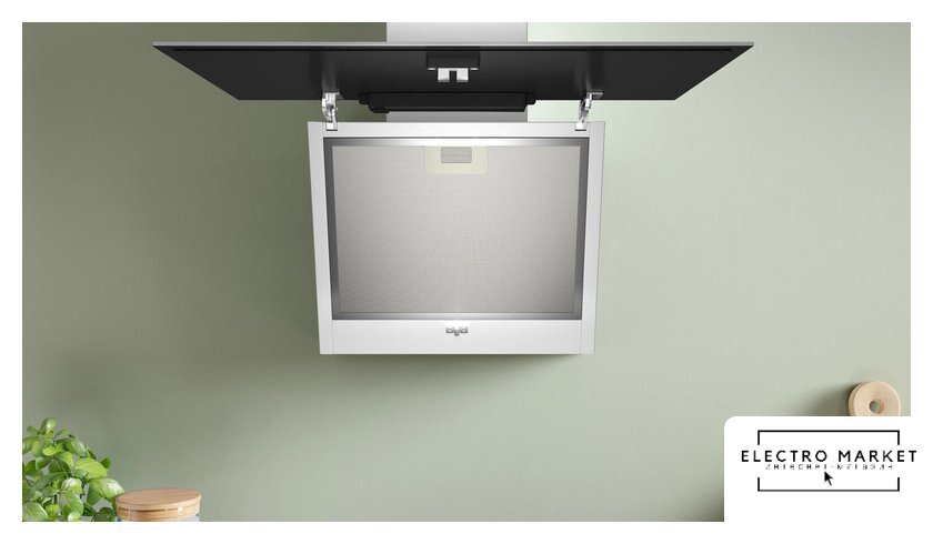 конструкция Т-образная, монтаж настенный, ширина 60 см, управление электронное/кнопочное, производительность вытяжки 473 м³/ч, производительность мотора 830 м³/ч, цвет нержавеющая сталь
