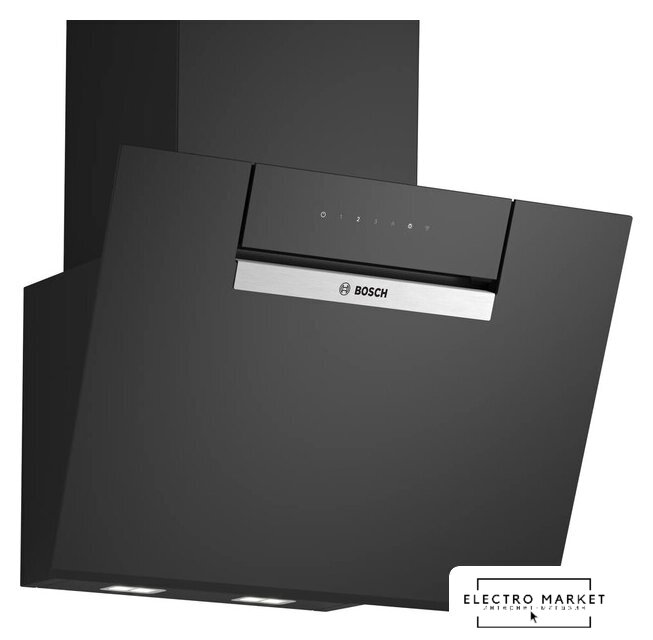 конструкция наклонная, монтаж настенный, ширина 59.8 см, управление сенсорное, производительность вытяжки 460 м³/ч, цвет черный
