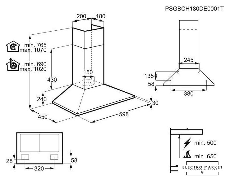 конструкция коробчатая, монтаж настенный, управление электронное/кнопочное, производительность мотора 900 м³/ч, ширина 33.2 см