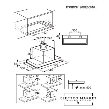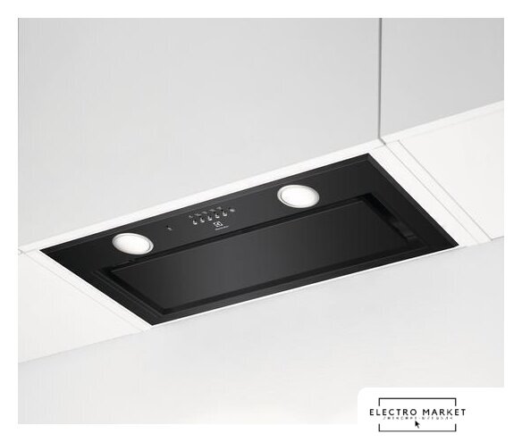 конструкция скрытая, монтаж для встраивания, ширина 54 см, управление электронное/кнопочное, производительность вытяжки 365 м³/ч, цвет белый