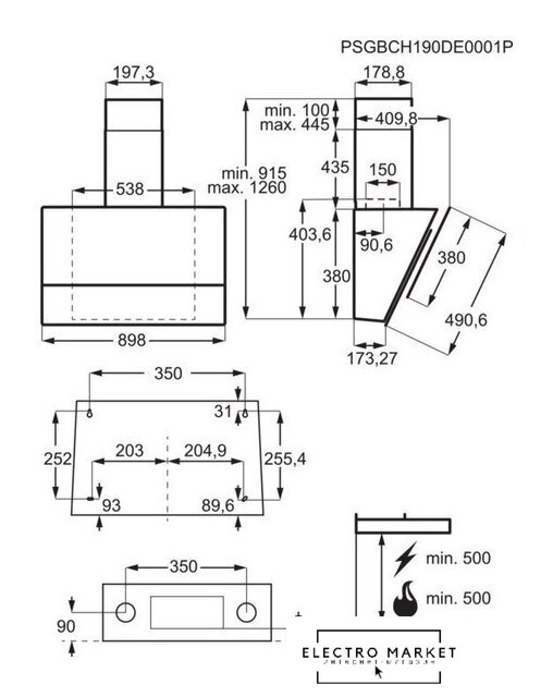 конструкция наклонная, монтаж настенный, ширина 79 см, управление сенсорное, производительность вытяжки 430 м³/ч, цвет черный