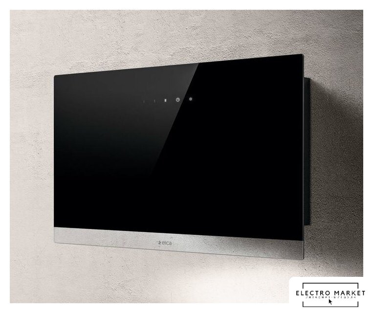 конструкция коробчатая, монтаж настенный, ширина 31 см, управление электронное/кнопочное, производительность мотора 900 м³/ч, цвет черный