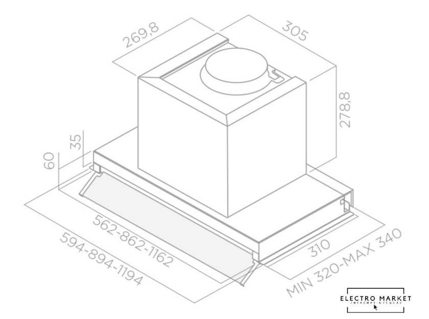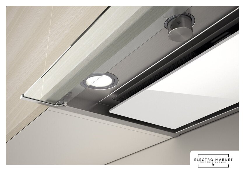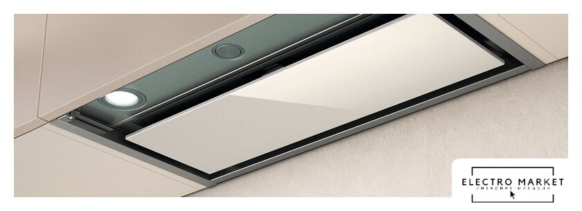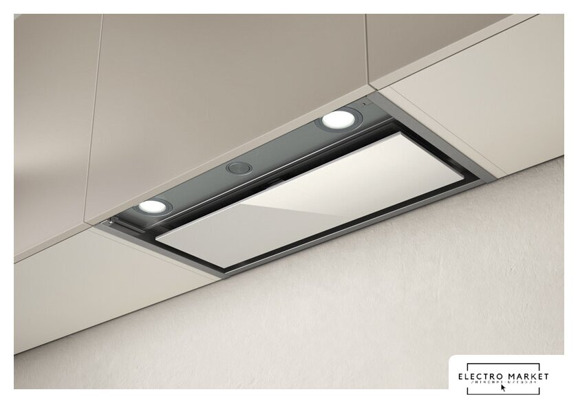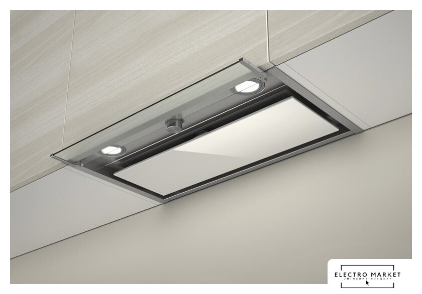 конструкция скрытая, монтаж для встраивания, ширина 52 см, управление электронное/кнопочное, производительность вытяжки 550 м³/ч, цвет нержавеющая сталь